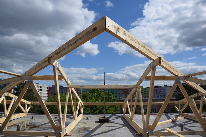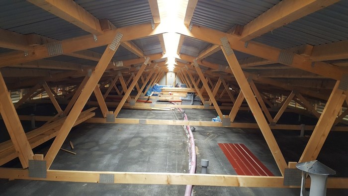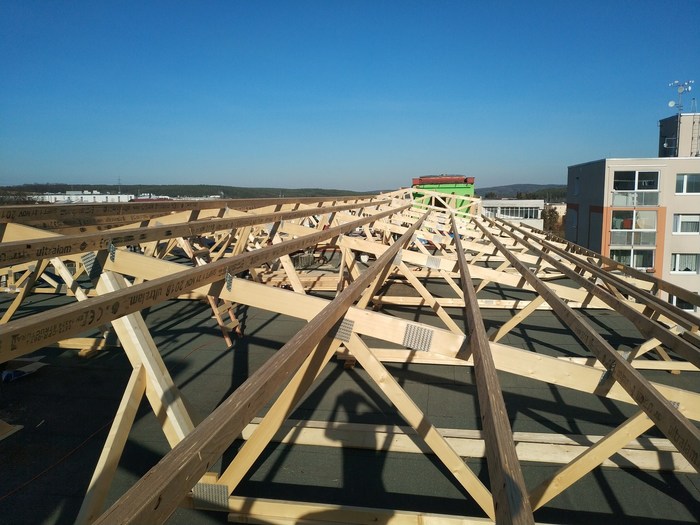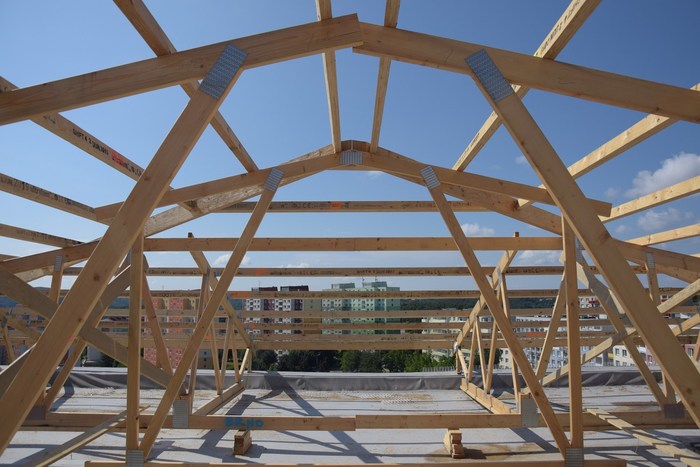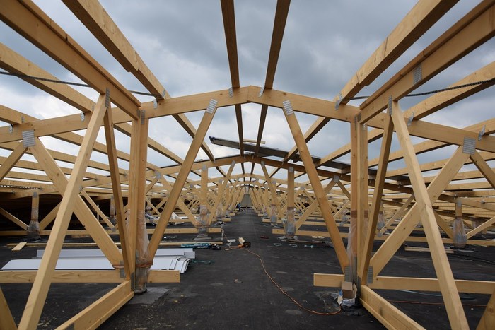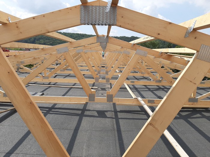Nosná konstrukce druhého pláště je tvořena dřevěnými příhradovými vazníky. Výroba vazníků probíhá ve výrobním závodě ve Vlachovicích. Svým vybavením patří k nejmodernějším zařízením v Evropě. Vazníky jsou vyráběny dle výrobní dokumentace od našich statiků. K výrobě vazníků je používáno sušené hoblované dřevo, které má přesné rozměry a dále nepracuje.
