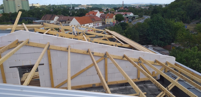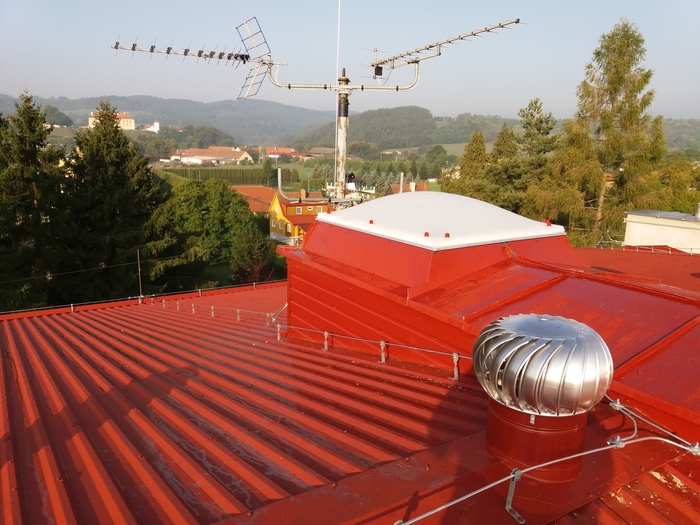 Nezbytnou součástí zastřešení bytových domů je také splnění požadovaných protipožárních opatření (protipožární obklad vzduchotechnických jednotek, protipožární stěna, světlík s funkcí požární klapky, atd.).